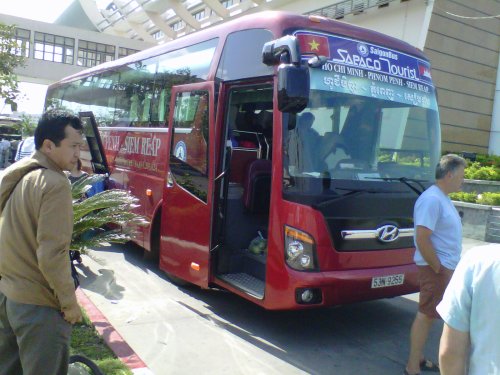 Sopaco Tourist. Itulah operator bus yang saya pilih untuk perjalanan dari Phom Penh pagi itu. Seperti jadual yang tertera di tiket, jam 10 pagi bus telah siap untuk mengantarkan para penumpang menuju Ho Chi Minh City. Sengaja saya memilih perjalanan lewat darat untuk bisa menyaksikan secara langsung dua negeri komunis bertetangga ini: Kamboja dan Vietnam.
