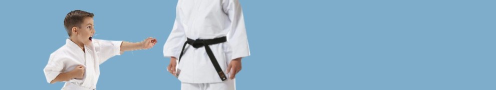 Karateka: sabuk putih mengawasi sabuk kuning melawan sabuk hitam