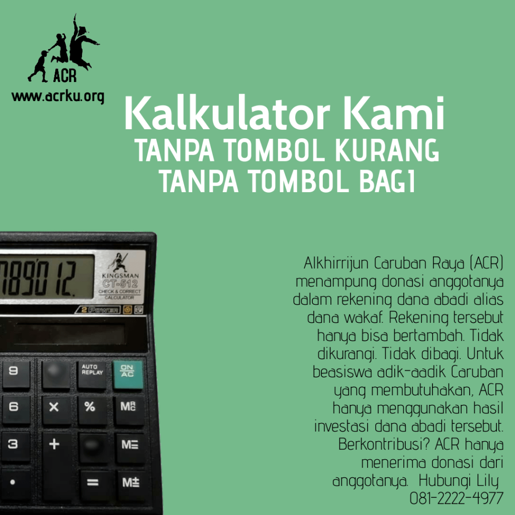 Fulbright dari timur. Itulah cita cita besar organisasi formal berlaman web http://www.acrku.org ini. Caruban hanyalah titik awal bagi organisasi yang kini diketuai oleh pendiri SNF Consulting itu. Tahun 1946 Fulbrihgt berdiri dan kini, 75 tahun kemudian, mewarnai dunia dengan para alumninya. Tahun 2020 ACR berdiri. Harapannya, kelak, 75 tahun yang akan datang, ACR juga akan mewarnai dunia dengan kontribusi para alumninya. Aamin. Itulah cita-cita besar ACR. Bedanya, Fulbright didanai oleh anggaran negara, ACR tidak. ACR memberi beasiswa dari investasi dana abadi alias dana wakaf yang disumbangkan oleh para anggotanya. Dana amal jariyah yang pahalanya terus mengalir karena manfaatnya juga terus mengalir. Dana wakaf untuk hadirnya sebuah Fulbright dari timur. Saatnya mendayagunakan wakaf untuk peran besar di masyarakat dunia.